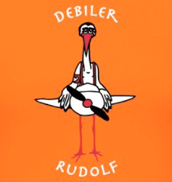 Собственно Аист Хайнар представляет собой тщедушную, забитую птичку, с ножками буквой Х, с гитлеровскими усиками на клюве, в слишком большой не по размеру солдатской каске. Из-за нарушений пищеварения (оказалось, что у аиста аллергия на лягушечье мясо) и скопления газов (которые, вырвавшись наружу, пару раз катапультировали его из гнезда, так что он чуть не убился), Хайнар не мог нормально питаться и вырос болезненным и слабым. С детства ему не везло: так, из-под белого оперения постоянно лезли большие черные перья, которые его несчастная мать безуспешно пыталась запудрить - следствие того, что бабушка Аиста Хайнара в свое время спуталась с большим черным стервятником. Или еще пример: как-то раз Хайнар собрался в теплые края, однако прибыл на вокзал в 19:45, тогда как его поезд ушел в 19:33. (Для тех, кто не понял - речь идет об исторических датах). С поездом уехал и чемодан с одеждой. И вот Аист Хайнар решил отомстить всему миру и заделаться самым великим дизайнером одежды, чтобы о нем узнали все. Такова история появления бренда "Аист Хайнар", описанная в первом, втором и третьем эпизодах о Птице-Фюрере. Вместе с Хайнаром на поезд не успели и остались на вокзале еще несколько птиц, составивших компанию фриков. Среди них дебильный Рудольф, жирный Герман, Йозеф, а также некто Бенито Шторхолини. Изображения всех этих персонажей появляются на футболках, толстовках, сумках и чашках, выпускаемых активистами "Тупик - справа". На одежде фигурируют и другие изображения и надписи, типа: "Воняет - спусти" под изображением свастики в унитазе, "Холодный крест" с изображением безобидной снежинки - намек на любимый ультраправыми Кельтский крест (по-немецки "Keltenkreuz" и "Kaelterkreuz" звучат очень похоже). Кроме того, "Тупик - справа" производит собачьи комбинезоны с надписью "Блонди против правых" и многое другое. Примечателен также сам логотип "Аиста Хайнара". На красном фоне нарисован аист в каске, с расправленными крыльями и одним яйцом между растопыренными ногами. В принципе, очертаниями логотип очень напоминает новую эмблему "Тора Штайнара". Яйцо, кстати, взялось не просто так, это намек на охватившую одно время всю Германию дискуссию, сколько же яичек было у фюрера: одно или два. Дискуссия была связана с появлением документа, в котором приводились признания военного врача Йохана Ямбора (Johan Jambor). Он оперировал Гитлера в Первую мировую после полученного им в 1916 году ранения и удалил будущему фюреру одну тестикулу. Иными словами, стеб авторов марки "Аист Хайнар" довольно жесткий, почти на грани фола. Не удивительно, что компания MediaTex сочла все это нападками на свой бренд "Thor Steinar" и подала в суд.
