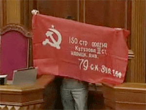 Копію "російської державної реліквії" в Україні прирівняли до державного прапора. Як і обіцяв, Янукович підписав відповідний законГлава держави підписав закон щодо порядку офіційного використання копій Прапора Перемоги. Про це повідомляє прес-служба президента.