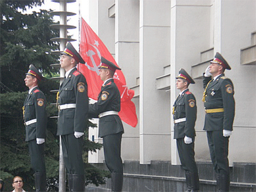 Закон передбачає підняття 9 травня копій червоного прапора Перемоги на будівлях поруч із державним прапором. Як повідомляється, "Президент України Віктор Янукович підтвердив свою позицію, висловлену під час відвідин Українського медико-соціального центру для ветеранів Великої вітчизняної війни у с.Циблі Київської області, підписавши 20 травня 2011 року Закон України № 3298-VI "Про внесення змін до Закону України "Про увічнення Перемоги у Великій Вітчизняній війні 1941-1945 років" щодо порядку офіційного використання копій Прапора Перемоги". За результатами правової експертизи вищезазначеного Закону Кабінет Міністрів України та Міністерство юстиції України висловилися за його підписання". Як відомо, 21 квітня Верховна Рада ухвалила закон, який передбачає вивішування 9 травня поряд з державним прапором червоний прапор перемоги. Згiдно iз законом, зовнiшній вигляд копій прапора Перемоги має вiдповiдати вигляду штурмового прапора ордена Кутузова другого ступеня 150-ї Iдрицької стрiлецької дивiзiї. Домінуючою зображувальною частиною на прапорі є головний символ Радянського Союзу - серп і молот. Водночас до 9 травня Янукович так і не підписав цей документ. Однак під час урочистої ходи Хрещатиком з нагоди вшанування 66-ї річниці Перемоги у Великій Вітчизняній війні прапор Перемоги несли попереду державного, синьо-жовтого прапора. 9 травня у Львові сталися сутички зі стріляниною між представниками проросійських організацій "Родіна", "Русское единство" і ВО "Свобода". Довідка "І": 150-а стрілецька ордени Кутузова II ступеня Ідрицько-берлінська дивізія cформована у вересні 1943 року на базі 127-й курсантської, 144-й і 151-й лижних бригад. Спочатку включена в склад 34-й армії. Потім в складі 6-й гвардійської армії і 3-й ударній армії пройшла бойовий шлях від Невеля до Берліна. 22 квітня 1945 року в ході Берлінської наступальної операції дивізія прийняла від Військової Ради 3-ї ударної армії один з дев'яти спеціальних прапорів, призначених для встановлення над рейхстагом. У ході бою за рейхстаг штурмовий прапор 150-й дивізії був встановлений на куполі будівлі воїнами 756 стрілецького полку дивізії: Олексієм Берестом, Михайлом Єгоровим і Мелітоном Кантарія. Скорочене найменування дивізії вказане на Прапорі Перемоги. Наказом Верховного Головнокомандуючого № 207 від 23 липня 1944 року за звільнення селища Ідріца (Псковська область Росії) 150-й дивізії було присвоєно найменування «Идрицкая». Наказом Верховного Головнокомандування від 11 червня 1945 року дивізії присвоєно найменування «Берлинская». У грудні 1946 року дивізія розформована. Росія об’явила штурмовийо прапор ордена Кутузова другого ступеня 150-ї Iдрицької стрiлецької дивiзiї своєю державною реліквією. Умови використання прапора визначаються Федеральним Законом Російської Федерації від 07.5.2007 р. N68-ФЗ "О ЗНАМЕНИ ПОБЕДЫ". 21.05.2011 Висловити думку у Форумі Публікації на тему: