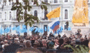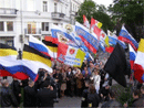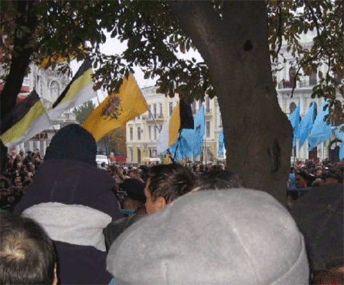 Як Катерину відкривали, або антиукраїнський шабаш в Одесі!У п'ятій годині вечора, в суботу 27 жовтня колона проукраїнських сил, яка зібралась в Одесі біля Оперного театру вирушила в бік Катерининського майдану. Біля чотирьохсот активістів, серед яких були представники ВО „Свобода", „Тризуба", КУНа. УНП та українського козацтва, під гасла: „Слава Україні", „Ганьба Гурвіцу" та „Ні Катерині на українській землі" вирушили в черговий раз висловити своє „ні" встановленню на одеській землі пам'ятнику кату українського народу - Катерині ІІ. Незважаючи на те, що Одеські засоби масової інформації постійно інформували одеситів, що акції проти Катерини влаштовують засланці зі Львова, більшість колони складали одесити. З приїжджих були тільки частина козаків, які приїхали виразити свій протест з Луганська, Кривого Рога і Тернополя. За сто метрів до місця відкриття пам'ятнику колона українців була зустрінута подвійним парканом з міліціянтами та Беркутом. Хвилин за тридцять уздовж вулиці перед загорожею разом з колоною противників пам'ятнику зібралось багато одеситів, які активно обговорювали всі „за" і „проти" встановлення пам'ятника. У цей час колона активно скандувала гасла, які виражали їх негативне відношення до постаті імператриці Катерини ІІ і міської влади під керівництвом пана Гурвіца. Багато хто з одеситів були здивовані побачити за парканом з міліціянтами і Беркутом людей, які стояли біля пам'ятника і тримали російські та Андріївські прапори, а пізніше над головами міліціянтів стали розвиватися прапора „Чорної сотні"... Ще більше було здивування, коли після того, як колона протестуючих проти пам'ятника заспівала гімн України – біля Катерини зазвучала пісня: „Боже, царя храні!"