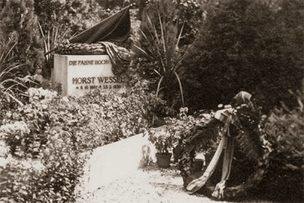 Однак неонацистські візити до могили Весселя не припинялися. Дирекція кладовища регулярно видаляла з могили троянди з коричнево-біло-червоними стрічками та інші "знаки уваги". Горст Вессель (1909-1930) - нацистський активіст, штурмовик СА (SturmAbteilung) - воєнізованих підрозділів Націонал-соціалістичної робітничої партії Німеччини (NSDAP). Він є автором вірша "Угору стяг" ("Die Fahne hoch"), що після смерті Весселя став словами гімну націонал-соціалістів. Після смерті штурмовика (важко поранений у сутичці з членом Компартії Німеччини) був героїзований нацистами, отримавши статус "мученика".