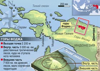 Як і сусідня Австралія, острів Нова Гвінея давним-давно від'єднався від Азіатського материка. У новогвінейській провінції Індонезії Іріанджая живуть не монголоїди, як на основних індонезійських островах, а племена чорношкірих папуасів, що здобувають собі прожиток збиранням, полюванням і рибальством. Причому північно-західна частина острова, гори Фоджа, особливе малонаселена і дуже слабо зачеплена цивілізацією - тут практично немає доріг і відсутня промисловість. Завдяки цьому в горах збереглася первозданна природа і види тварин та рослин, що ніде не зустрічаються. Один з учасників експедиції, Стівен Річардс з Музею штату Південна Австралія, відзначає, що на Землі залишилося дуже небагато подібних територій, а керівник експедиції Брюс Білер порівнює місцевість, яку вони досліджували, з райським садом. Впродовж останніх 50 тисяч років фауна і флора цих гірських джунглів існували в незмінному стані. Міжнародна експедиція з 13 вчених США, Індонезії і Австралії протягом місяця досліджувала гористий район на півночі острова площею близько 1 мільйона гектарів. На приблизно 750 тисячах гектарів долин проживають не більш 300 чоловік, решта 300 тисяч гектарів є незайманими джунглями.