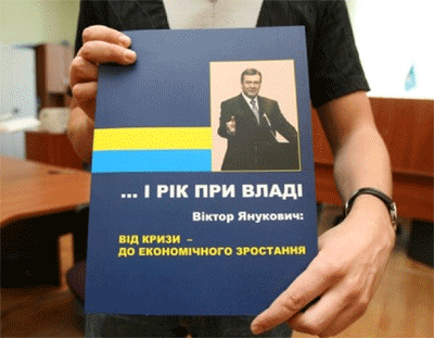 • На книжці Януковича прапор догори-дриґом. Фото з pravda.com.ua