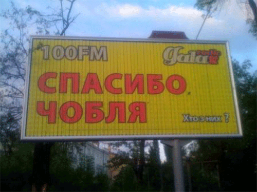 Російськомовна матерщиннаМоральна комісія хоче визнати аморальною рекламу «Гала-радіо» «Спасибо, Чобля» і «Бородатая Чорнописька», повідомляє Телекритика. красавицу На засіданні Національної експертної комісії з питань захисту суспільної моралі 27 травня аналізували стан виконання законодавства України «Про захист суспільної моралі» у зовнішній рекламі. До цього засідання комісія проаналізувала 3 тисячі носіїв зовнішньої реклами в Києві, Полтаві, Черкасах, Львові та Сімферополі. За словами заступника голови НЕК Геннадія Дерев'янчука, близько 30% рекламної продукції, щодо якої були звернення до комісії від різних установ та громадян, відповідали вимогам законодавства, натомість 55% - визнано продукцією еротичного характеру, а 17% - рекламною продукцією, яка порушує етичні норми. Зокрема, на засіданні члени комісії проголосували за рішення, яким визнано рекламу фітнес-клубу «Феромон» зі слоганом «Может, займемся фитнесом» такою, що має ознаки еротичного характеру. Також, на думку пана Дерев'янчука, ознаки порушень містила реклама зі слоганами «Спасибо, Чобля» та «Бородата Чорнописька» (реклама конкурсу «Гала-радіо» на найкумедніше прізвище). «Тому що його можна прочитати по-різному, з різними наголосами», - аргументував свою точку зору Геннадій Дерев'янчук. «Думаю до наступного засідання наші експерти встигнуть попрацювати, і ми винесемо ці питання на розсуд членів комісії», - пообіцяв він. Джерело: telekritika.kiev.ua, 27 травня 2010 Дивіться також: