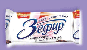 Зображення з сайту sostav.ru При выводе мороженого "Зефир" компания "Луганскхолод" ставила перед собой цель - прежде всего, создать инновационный вкус мороженого. А при разработке этикетки дизайнерами, в этом случае, были использованы традиционные методы оформления.
