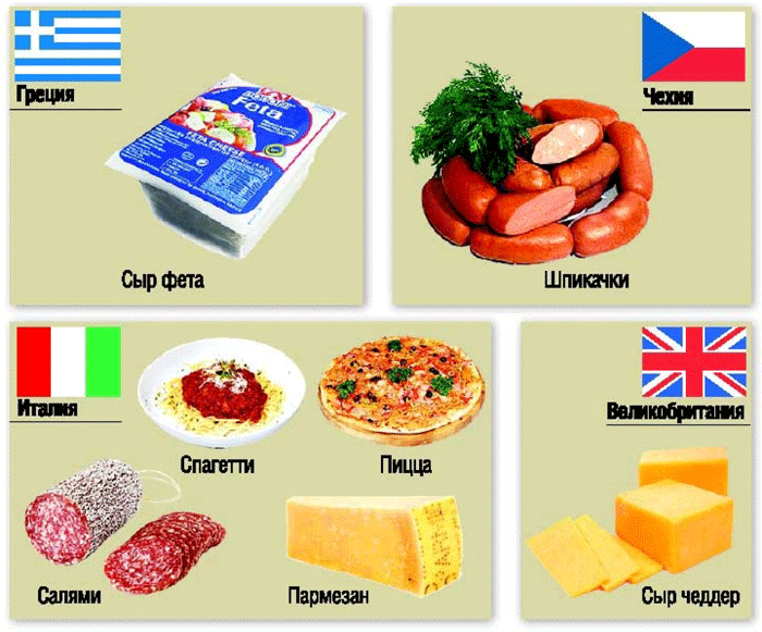 Багато європейських держав пішли іншим шляхом: патентують продукти поза прив'язкою до географічної назви, а до історичного початку виробництва. Так, поляки добилися права власності на назви «водка», «мисливські ковбаски», «шинку». Італійці — на «латте», «піца», «пармезан», «салямі», «спаґетті». Сирий фета, згідно патентам, може вироблятися тільки в Греції, сирий чеддер — у Великій Британії, портвейн — в Португалії, йогурт — в Болгарії. Зустрічаються і спірні питання співзвучності української торговельної марки з європейським географічним позначенням, як наприклад ТМ «Котнар» і Cotnari. «Заборона використовувати назву «спаґетті» — це жарт. Спаґетті не пов'язані тільки з Італією, з одним районом або містом. Можна зрозуміти, що є один лише рокфор в світі — у Франції. Але спаґетті виробляє не одна країна в світі!» — говорить співвласник компанії «Чумак» Йохан Боден.
