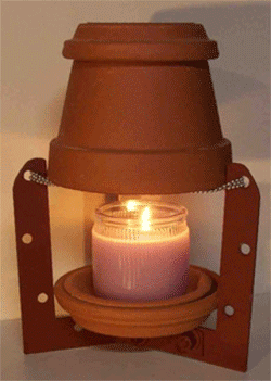 Цей дивний на вигляд свічник, стверджує його творець, може виявитися незамінним при відключенні електрики. Висота його складає біля 23-х, а ширина – близько 18-ти сантиметрів. У його зовнішньому вигляді звертає на себе увагу перевернений над свічкою горщик. В цьому горщику (а він у "минулому житті" квітковим горщиком і був) і прихована основна родзинка системи. Горщик цей не простій, а зіставний. Він зроблений з трьох горщиків різного діаметру, вкладених один в інший і сполучених довгим металевим болтом, на який нанизаний цілий оберемок шайб і гайок (благо отвір в дні зазвичай у горщиках вже є).