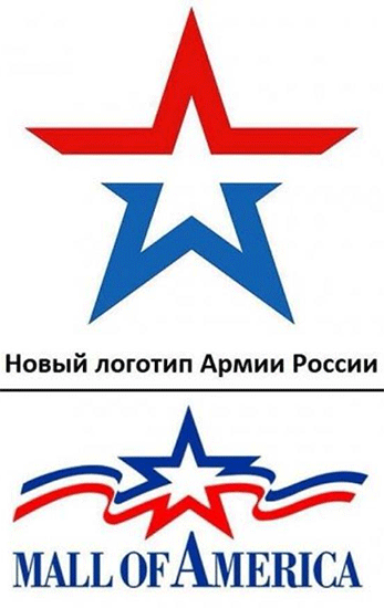 Ідею американського бренду використано у новому символі Збройних сил РФ "Армія Росії", презентація якого відбулася 21.06.2014 р. на підмосковному полігоні "Алібіно". Міноборони РФ запевняє, що при формуванні образу майбутнього символу дизайнери "дбайливо поставилися до традицій і форми російської армії, взявши за основу п'ятикутну зірку, яка впродовж 3 тис. років сприймається як символ захисту і безпеки", схожість знаку Збройних сил РФ із давно відомою емблемою супермаркету Mall of America вражає. У російському військовому відомстві вважають, що "Знак означає рух вперед і прагнення нових цілей", – чим не слоган супермаркету!? Джерело: mallofamerica.com, stat.mil.ru 22.06.2014 Дивіться: