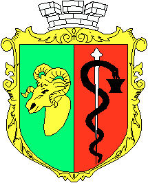 On the 30 of May 1997 town council session has confirmed a modern emblem. A shield per pale with vert and gules. In the right field there is an or ram's head. In the left a sable dragon entwined round an argent staff and drinking from a sable cup.