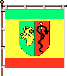 On the 30 of May 1997 the session of the town council approved the gonfalon: a rectangular canvas with a ratio of the sides 1:1, in the yellow field is city emblem. In top and bottom the gonfalon has a green and red edging with width of 1/6 of width of the gonfalon. ![]() |