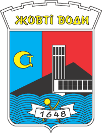 Сучасний герб затверджений рішенням 4-ої сесії міської ради ХХІІ скликання за N55 від 24.02.1995р. У золотому щиті з лазуровою шиповидною базою - брунатний камінь, оперезаний трьома червоними електронними орбітами, що символізує промислову основу міста - видобуток уранової сировини. В базі зображені схрещені золоті козацькі шаблі та число 1648, що символізують переможну битву повстанських військ Богдана Хмельницького з польсько-шляхетськими загарбниками в урочищі річки Жовта 16 травня 1648 року. Щит увінчаний лазуровою шестернею з золотим написом "Жовті Води". Автор - П.Чвалко. Використані матеріали сайту heraldry.com.ua ![]() |