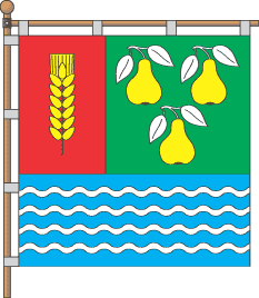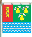The modern emblem Shield per fess and in chief per pale. In a right gules smaller field is or ear in a pale. In the left vert greater are three or pears. In the third azure field are four argent wavy fesses. The arms is edged by decorative cartouche and decorated by a rural crown. Or pears symbolize fruits from which village has received the name.