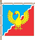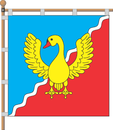The modern emblem Shield per bend sinister wavy on azure and gules. In the center is the or goose. Azure is the symbol of greatness and beauty of this land, or means courage and bravery. Sinicter is a symbol of small Hysynka river. The goose is a symbol of the village name.