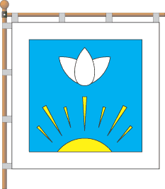 The modern emblem Azure; the argent stylized water lily. In the base is a segment of an or solar disk with beams. The board has argent border. The water lily personifies tenderness of the nature, the sun - vital force of the sky. The arms also symbolizes lyricism and singularity of a legend.