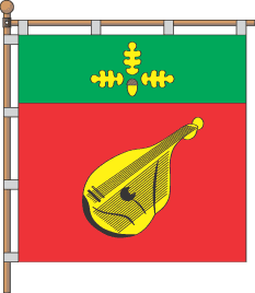 The modern emblem Gules; or kobza. In the vert head is or oak branch which has three leaf and acorns. The arms is edged by decorative cartouche and decorated by a rural crown. Both fields are connected to stay in village G.S.Skovoroda. The oak branch symbolizes the oaks planted by him, one of which has received now memorial registration. Kobza reminds that he liked to play on it.