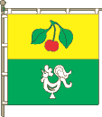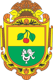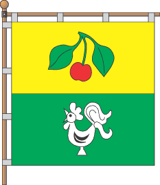The modern emblem Shield per fess by or and vert. In the top field is a gules ripe cherry. In bottom is the argent cheerful cock. The arms is edged by decorative cartouche and decorated by a rural crown. Or field means riches of this land and sanctity of local people thoughts, the cherry symbolizes of village name. The cock is a symbol of the residents employments.