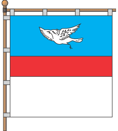 It was confirmed at February, 1998. The rectangular panel with sides ratio as 1:1 is divided on the three horizontal strips - dark blue, red and white. On the blue strip is white flying skylark. The stripes ratio is 2:1:2. ![]() |