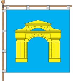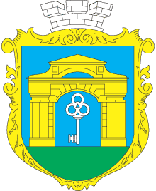 It was confirmed at 2002. In an azure field is or park gate and a vert base, in the gate is an argent key the head up, bit to the right. The author is V.E.Kryvenko. The gate based in the first half of XIX century by earl M.D.Tolstoi (1804-1891). It is symbol of Onufriivs'kyi - an oustanding monument of landscape gardening of the state value. In the composition is element of the earl's arms - the key. It symbolizes wisdom, knowledge, freedom of a choice of actions. The key appears in heraldry as an emblem of free cities, that is self-management. The head of a key made out as symbol of the Sacred Trinity. V.Kryvenko, K.Shlahovyi, "THE KIROVOHRADS'KA OBLAST' SYMBOLS"