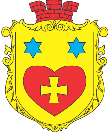 It was confirmed at 2000. In or field is the gules heart, on which is or cossack cross, above them are two azure six-beam stars. The authors are O.P.Abolmasova, A.B.Grechylo. In ХVII-XVIII centuries Vlasivka was the squadron city of Myrhorod cossack regiment and used a seal, on the basis of which was developed symbolics of settlement. Or symbolizes honour to the heroic past, gules means force and courage of cossacks. V.Kryvenko, K.Shlahovyi, "THE KIROVOHRADS'KA OBLAST' SYMBOLS"