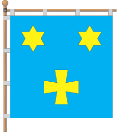 It was confirmed at 2000. A dark blue square panel with two yellow six-beam stars and a yellow cossack cross. V.Kryvenko, K.Shlahovyi, "THE KIROVOHRADS'KA OBLAST' SYMBOLS" ![]() |