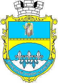 The modern emblem The arms of Mins'kyi region of Kyiv was approved by district council at February, 29, 2000. In an azure field with argent compartment is an argent archangel Michael above the or arch bridge. He has an or aureola, sword and cross. The compartment contains the three argen lilies, directioned hill up, and two azure liles, directioned from top to bottom. The emblem adorned by or decorative cartouche and crowned by argent mauerkrown with three towers. There is azure ribbon with or superscription "Mins'kyi raion of Kyiv" in the cartouche bottom.