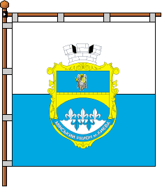 The gonfalon The gonfalon was approved by district council at February, 29, 2000. and a rectangular canvas with a ratio of the sides: 1:1 derivated by two isometric horizontal bands of white and cyan colours. In the center of the panel is the emblem of region in the cartouche and with the crown. ![]() |