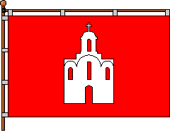 The gonfalon In October 3, 1998 the session of the municipal council approved the gonfalon: a rectangular canvas, in a red field there is a white church with a white cross. ![]() |