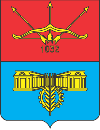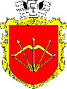 The soviet emblem It was confirmed at December, 28th, 1982 by the decision N748 of city council executive committee. The board per pale by gules and azure. In the first field is or bow and three arrows, under it is date "1032" (year of the city foundation by Jaroslav Mudryi). In the second part is the colonnade "Moon", details of machines and a wheaten ear. The author is V.Ljul'ka.