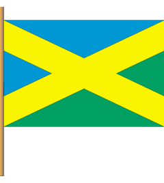 The flag was approved at December 23, 1999. It has the orthogon form with a ratio of its width to length 2:3. The field is parted in Andrews cross by bands of yellow colour in 1/4 from width of a width. The upper and left-hand parts are blue colour, and dextral with lower parts are green. ![]() |