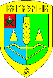 The soviet emblem was confirmed at November, 11, 1989. A shield per fale azure and vert. There is or bow accompanied two or shugar heads with argent tops in the field. In the canton a natural-colored chestnut branch in an azure field. There is word "KAHARLYK" in the chief of cartouche and crossed sickle with hammer in a base. The author is B.Shulevs'kyi. ![]() |