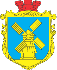 In an azure field on the or base is or windmill. The emblem adorned by or decorative cartouche and crowned by a gules city crown. The settlement is located on the windy hill convenient for construction of windmills. As old residents tell, in beginning XX centuty here were more than 60 windmills.