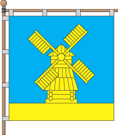 Gonfalon is a dark blue rectangular panel with a yellow horizontal strip below on which is a yellow windmill. ![]() |