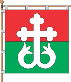 Gonfalon is a rectangular panel from two equal horizontal strips - red and green. In the centre is white blossomed clower cross. ![]() |