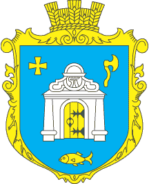 In an azure field is an argent cellar with the or door, accompanied in a right top corner by the or paty cross, at the left top corner by the or axe, and by the or fish below. The emblem adorned by or decorative cartouche and crowned by an or rural crown. The image of a cellar means the name of village. According to legends, there were cellars of the Mykhailivs'kyi monastery. The cross means it. In cellars kept not only honey, products, but also a princely arsenal of the weapon. The image of an axe means it. By the legend, the first settler was fisherman Gudz', that symbolizes the image of a fish.
