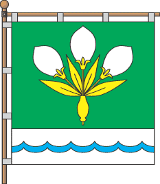 Gonfalon is a rectangular green panel with white engrailed strip below, on which is dark blue engrailed fillet fess. In the centre is yellow puhivka plant with three white flowers. ![]() |