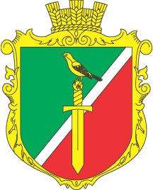 The shield bend narrow argent sinister on gules and vert. In the centre of it is or sword in pale. There is or nightingale on the sword. The emblem adorned by or decorative cartouche and crowned by an or rural crown. Sword is a mention about Rusaniv hailstones. A nightingale is symbol of an ancient family which deduce from the epic Nightingale-robber. Gules color symbolizes bravery of ancestors, vert means well-being and generous vegetation. The argent strip means Trubizh river.