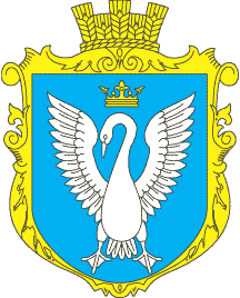 In an azure field is an argent swan with the straightened wings, crowned by the or crown. The emblem adorned by or decorative cartouche and crowned by an or rural crown. The village was found among a rich wood in marshland where, according to legends, was a water and many swans. One of rural district nowadays refers as Lebedivka. Therefore the argent swan is village symbol. Azure color symbolizes greatness and beauty. The crown above a bird reminds, that the village was the centre of princely possession and has the initial value "a wreath of the winner".