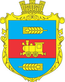 In an azure field is the gules fess charged by the image of the or ancient locomotive, accompanied by horizontal or ears above and below it. The emblem adorned by or decorative cartouche and crowned by an or rural crown. The locomotive is a mention that the settlement was found at XIX century as railway station. The gules strip symbolizes railway, and azure strips means picturesque fields which surround the railway. Gules color is a symbol of fire which moves steam machines. Or ears are symbol of economic activities of village inhabitants.