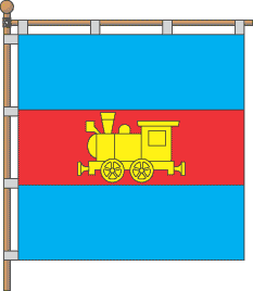 Gonfalon is a rectangular dark blue panel with a red horizontal strip in the centre, on it is the yellow ancient locomotive. ![]() |