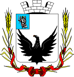 B.Kene worked out a project of a new emblem of the town - sejant sable eagle in an argent field. The emblem of Kyivs'ka province was in the canton. The shield is crowned with an argent mauerkrone with three embattlements and within two or spikes entwined with the ribbon of the Order of St.Alexander. It was confirmed on the 1st of January 1874.