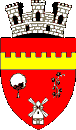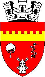 The emblem of the Romanian period The emblem of the Romanian period was confirmed in 1932. In a gules field there was argent mill and on the dexter side an argent tree and on the sinister side an argent vine. Above a mill a or embatted belt. The shield is crowned with an argent mauerkrone with three embattlements.