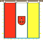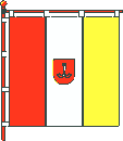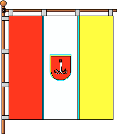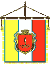 The gonfalon The gonfalon was affirmed by June, 29, 1999. A square panel from three vertical isometric bars - red, white and yellow, divided between itself by thin dark blue strias, on a white bar - small coat of arms of city (the relation of the coat of arms on height to the side of a flag constitutes 2:9). The authors are Y.Vyazovs'kyi and G.Faer.