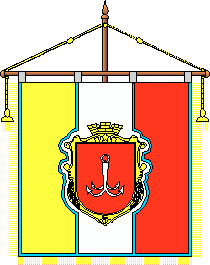 The modern emblem (little) The small emblem of Odesa is used without cartouche and crown, but with a azure-or bordering on perimeter of a board.