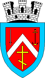 The emblem of the Romanian period The emblem of the Romanian period was confirmed in 1932. A shield framed with an azure bordure. In a gules field there was an argent rafter with an or cross under it. Above the rafter in the dexter side there was an argent sword and on the sinister side an or anchor. The shield was crowned with an argent mauerkrone with three embattlements