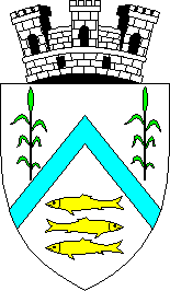 The emblem of the Romanian period The emblem of the Romanian period was confirmed in 1932. In an azure field there was an azure rafter with three or fishes under it. In chief and on the sides there were two vert rush stalks. The shield is crowned with an argent mauerkrone with three embatlements.