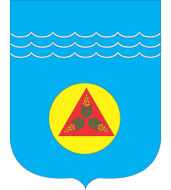 In an azure field in the chief are three argent wavy fesses. At the centre of a board the lateral or sphere with a gules triangle on it. In a triangle are three vert pine branches. The heated pelletы mean basic production of ore mining and processing enterprise. The waves in the shield mean Dnipro river. The gules triangle is symbol of iron, raw material for which manufacturing in the city. Three vert pine branches mean man-made woods, which surround city.
