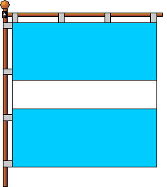 21 вересня 1995р. сесія міської ради затвердила хоругву: прямокутне полотнище з співвідношенням сторін 1:1, що складається з трьох горизонтальних смуг - синьої, білої та синьої (співвідношення 2:1:2). ![]() |