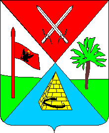 The emblem of the Russian period The emblem of the Russian period was confirmed on the 22nd of June 1803. A shield was quaterly and per bend. In the first part in a gules field there were two small swords in cross. In the second part there was a banner with a state emblem in an argent field. In the third part a growing palm tree in an argent field and in the fourth part in an azure field there was a stone pyramid with symbol of eternity - a snake holding its tail in its jaws.