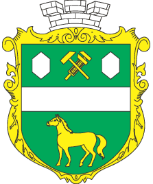 In the vert field is azure beam. There are or crossed hammer and a raiway key in cross, accompanied by two argent hexagons. Under beam is or horse. Hammer and a raiway key mean city origin. Hexagons mean kaolin's mining and building's construction manufacture. Beam means the Konka river. The horse symbolize old legend about Turkey galley with or horse that downed in the Konka river.